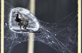 “I’ll manage that,” said the Water Spider. She spun a thread from her body and wove it into a tusti bowl, which she secured on her back. She then crossed over to the island and made her way through the grass to where the fire still burned. Carefully, she placed one tiny coal of fire into her bowl and returned with it. Since then, we have had fire, and the Water Spider still keeps her tusti bowl.
