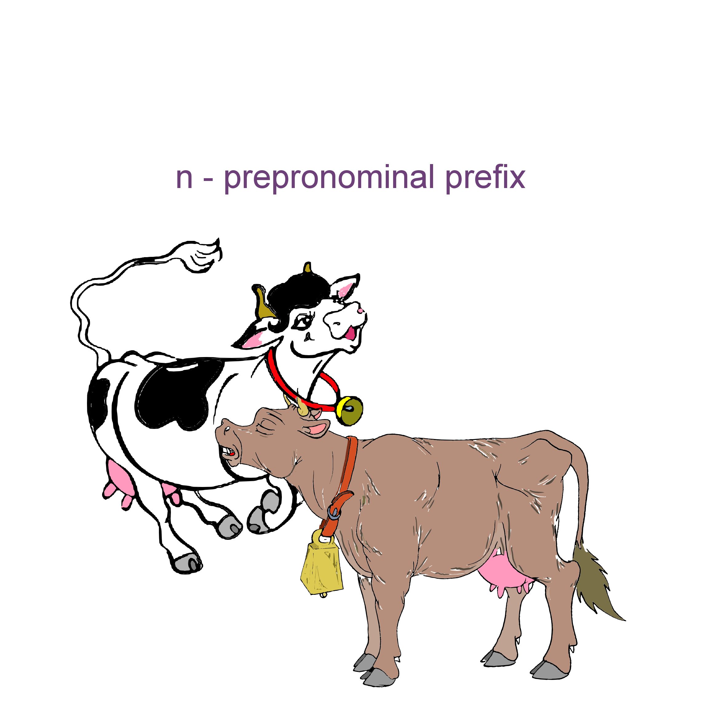In some constructions n – prepronominal prefix is used when the suffix – na (negative deverbalizer) to announce negation. It typically means ‘without;’ in English is can be translated as ‘without doing VERB,’ ‘ not having done VERB,’ or ‘before doing VERB.’ One purpose of its use is adverbial, it modifies another verb.