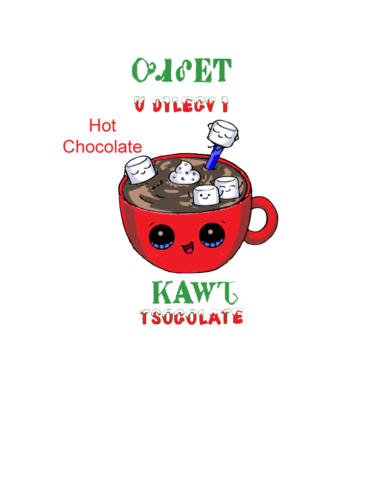 udilegv’i tsogolate is hot chocolate in Cherokee. u is the English oo sounds in ooh. di is the English d and short i sounds in did. le is the English l and long a sounds in lay. gv is the English g and nasalized uh in gut. There is a glottal stop, brief pause, between two vowel. i is the English long e sound in eek. tso is the English j and long o sounds in Joe. go is the English g and long o sounds in go. la is the English l and short a sounds in lap. te is the English t and long a sounds in tay. udilegv’i is pronounced oo – d – short i – l – long a – g – nasalized short u – glottal stop – long e. tsogolate is pronounced j – long o – g – long o – l – short a – t – long a.