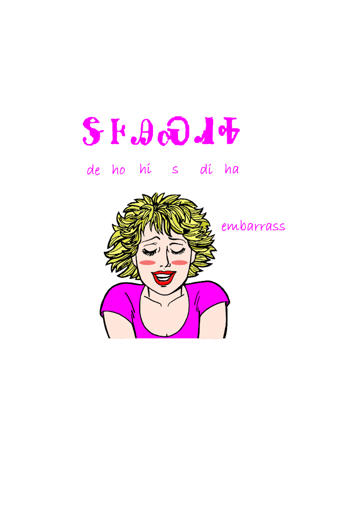 dehohisdiha is embarrass in Tsalagi. de is the English d and long a sounds in day. ho is the English h and long o sounds in hoe. hi and s is the English h, short i, and s sounds in his. di is the English d and short i sounds in did. ha is the English h and short a sounds in ha. dehohisdiha is pronounced d – long a – h – long o – h – short i – s – d – short i – h – short a