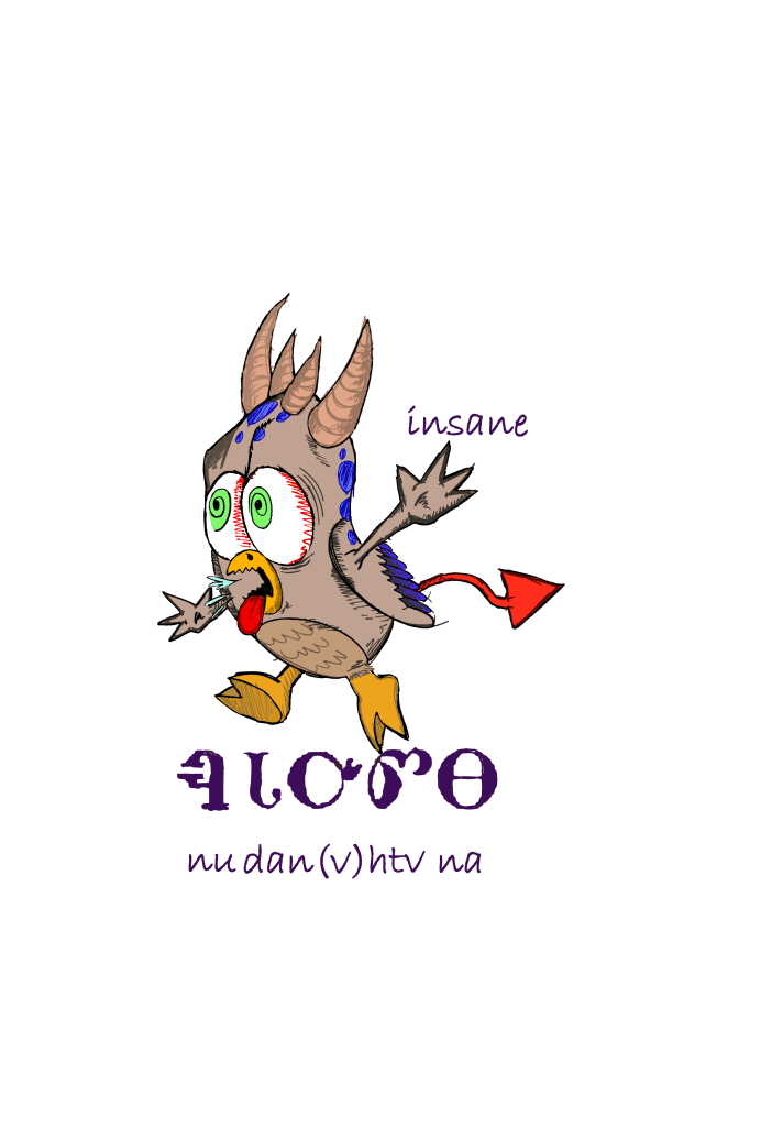 Crazy is ulvnotisgi. u is the English oo sound in ooh. lv is the English l and nasalized uh in lung. no is the English n and long o sounds in no. ti and s is the English t, short i, and s sounds in tis. gi is the English g and long e sounds in gee. ulvnotisgi is pronounced oo – l – nasalized uh – n – long o – t – short i – s – g – long e.