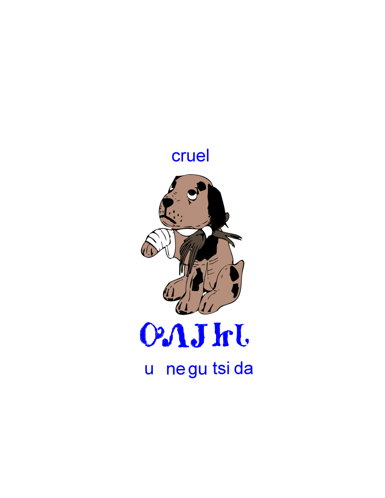 unegutsida is cruel in Tsalagi. u is the English oo in fool. ne is the English n and long a sounds in nay. gu is the English g and oo sounds in goo. tsi is the English j and short i sounds in Jim. da is the English d and short a sounds in dad. unegutsida is pronounced oo – n – long a – g – oo – j – short i – d – short a.