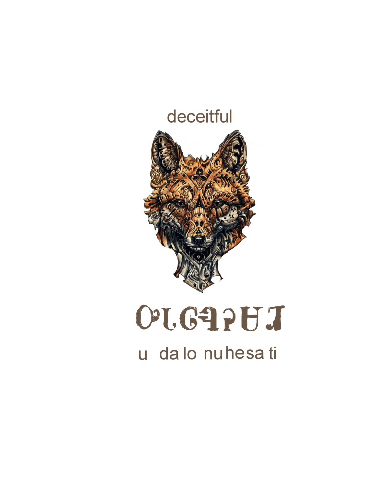 utloyastanv is entitled in Tsalagi. u is the English oo sound in ooh. tlo isn’t really found in English, but a tl blend and long o sounds similar to whitlow. ya and s is the English y, short a, and s sounds in yasmak. ta is the English t and short a sounds in tan. nv is the English n and a nasalized short u sound in nut. utloyastanv is pronounced oo – tl – long o – y – short a – s – t – short a – n – nasalized uh.