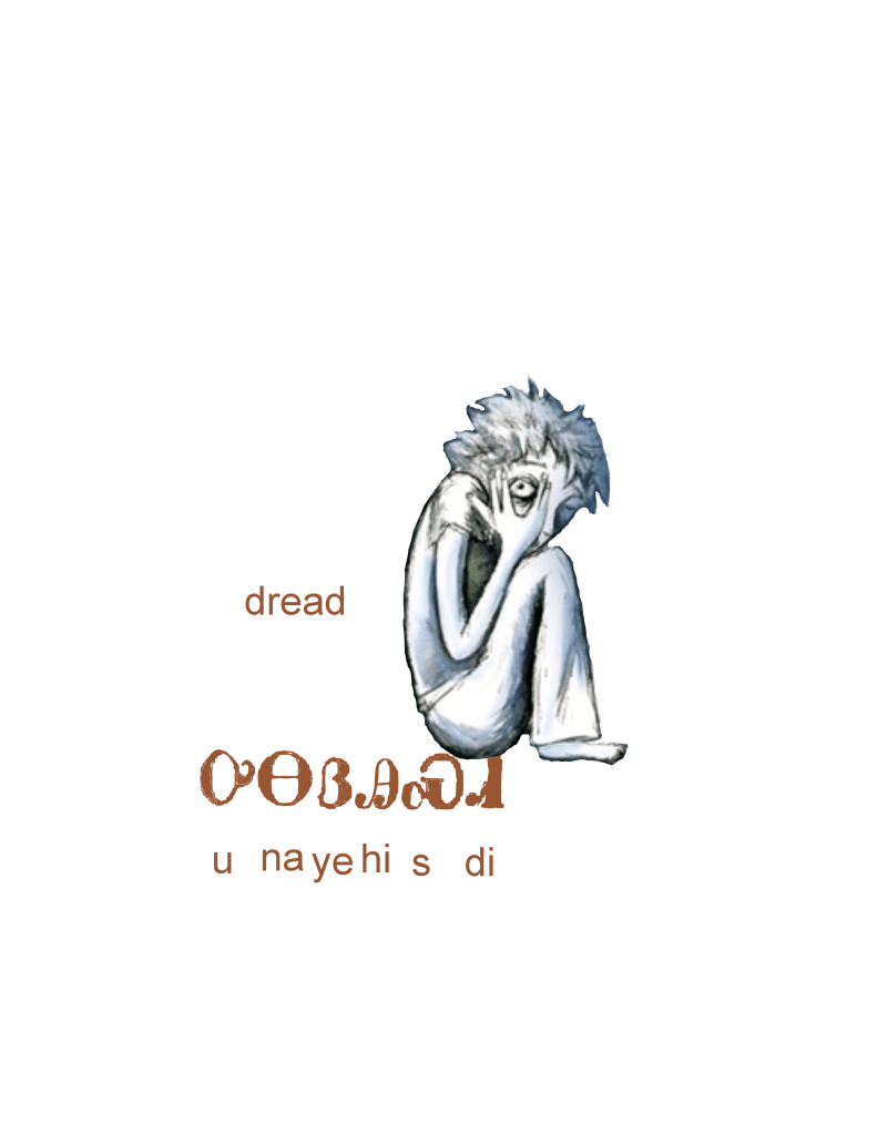 unayehisdi is dread in Tsalagi. u is the English oo sound in good. na is the English n and short a sounds in nap. ye is the English y and long a sounds in yay. hi and s are the English h, short i, and s sounds in his. di is the English d and long e sounds in dee. unayehisdi is pronounced oo – n – short a – y – long a – h – short i – s – d – long e.