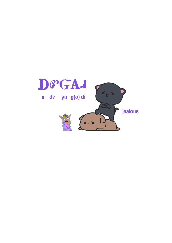 adadvyutsehi is envy in Tsalagi. a is the English short a sound in at. da is the English d and short a sounds in dad. dv is the English d and nasalized uh sounds in duh. yu is the English y and long u sounds in you. tse is the English j and long a sounds in Jay. hi is the English h and long e sounds in he. adadvyutsehi is pronounced short a – d – short a – d – nasalized uh – y – long u – j – long a – h – long e.