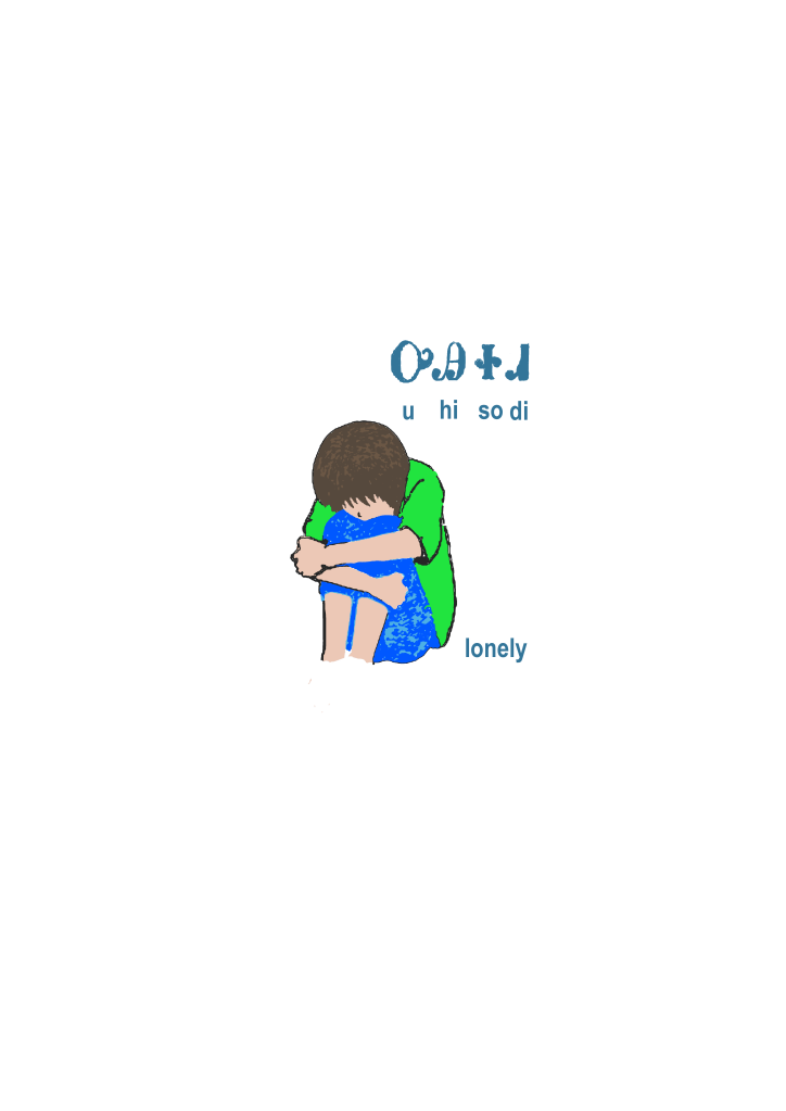 eladi is down in Tsalagi. For most of my life this has been in regards to direction, but lately people have been using it to describe a feeling instead of using depressed. Therefore, I have added it. I am not sure if this is a children’s fad, fast speech kind of thing. e is the English long e sound as in the letter e. la is the English l and short a sounds in lap. di is the English d and long e sounds in dee. eladi is pronounced long e – l – short a – d- long e.