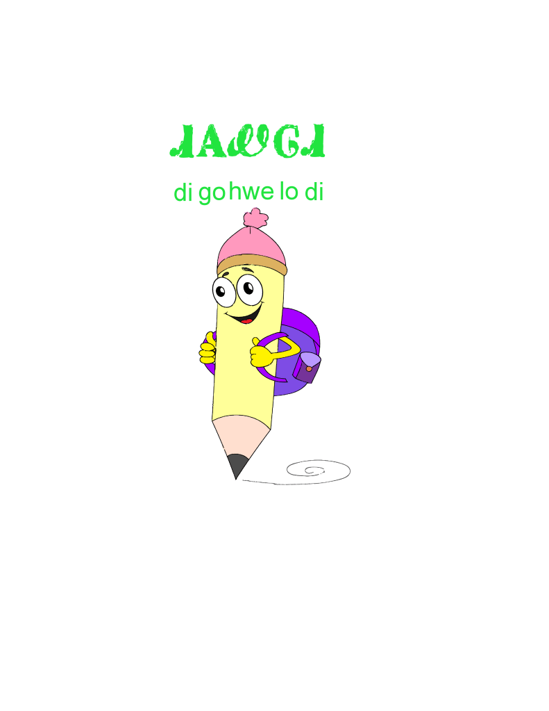 digoweli or digo(h)weli or digohweli is book in Tsalagi. di is the English d and short i sounds in did. go is the English g and long o sounds in go. There is an intrusive h with the we, a breathy exhale while producing the ‘w’. we is the English w and long a sounds in way. li is the English l and long e in Lee. digoweli is pronounced d – short i – g – long o – intrusive h – w – long a – l – long e.